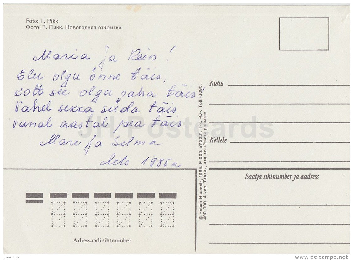 New Year Greeting card - 2 - Birch bark bag - beer mug - apples - 1985 - Estonia USSR - used