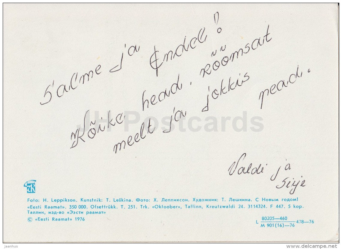 New Year Greeting card - 2 - candle - decorations - flowers - 1976 - Estonia USSR - used