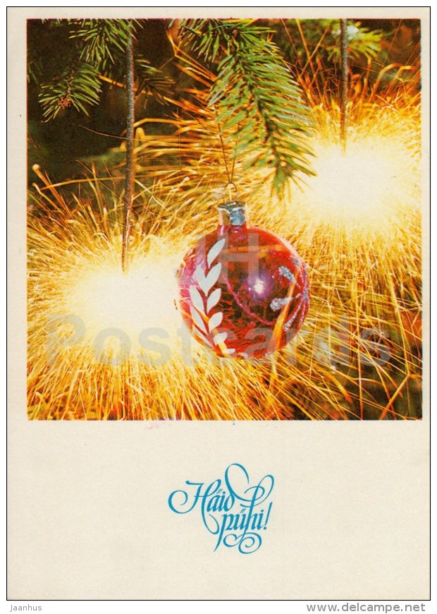 New Year Greeting card - 2 - sparklers - decorations - 1980 - Estonia USSR - used