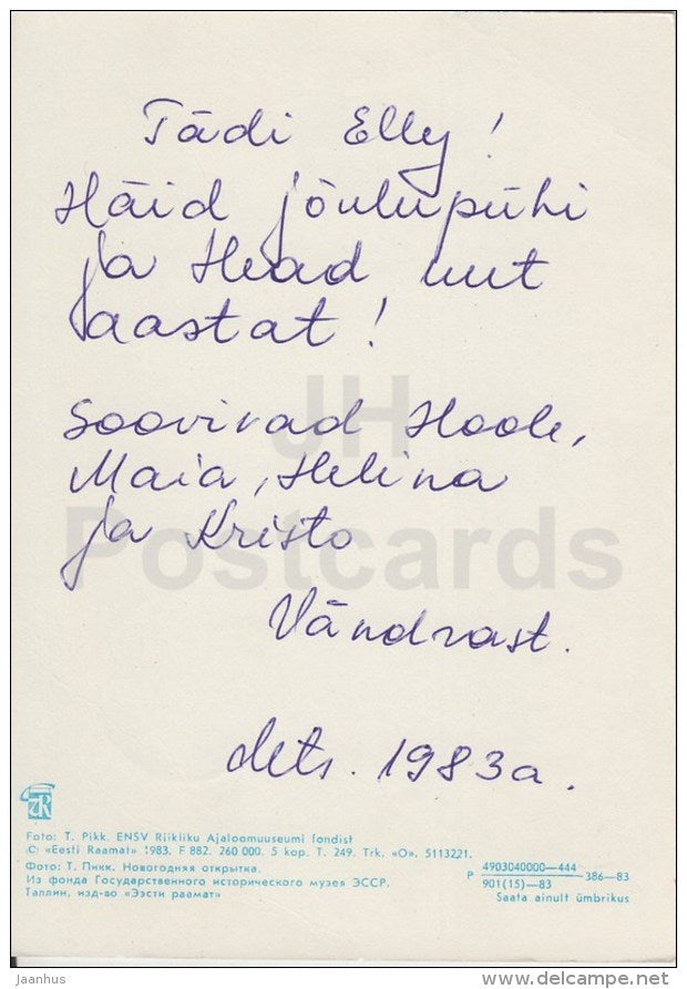 New Year Greeting card - 3 - beer mug - embroidered quilt - 1983 - Estonia USSR - used