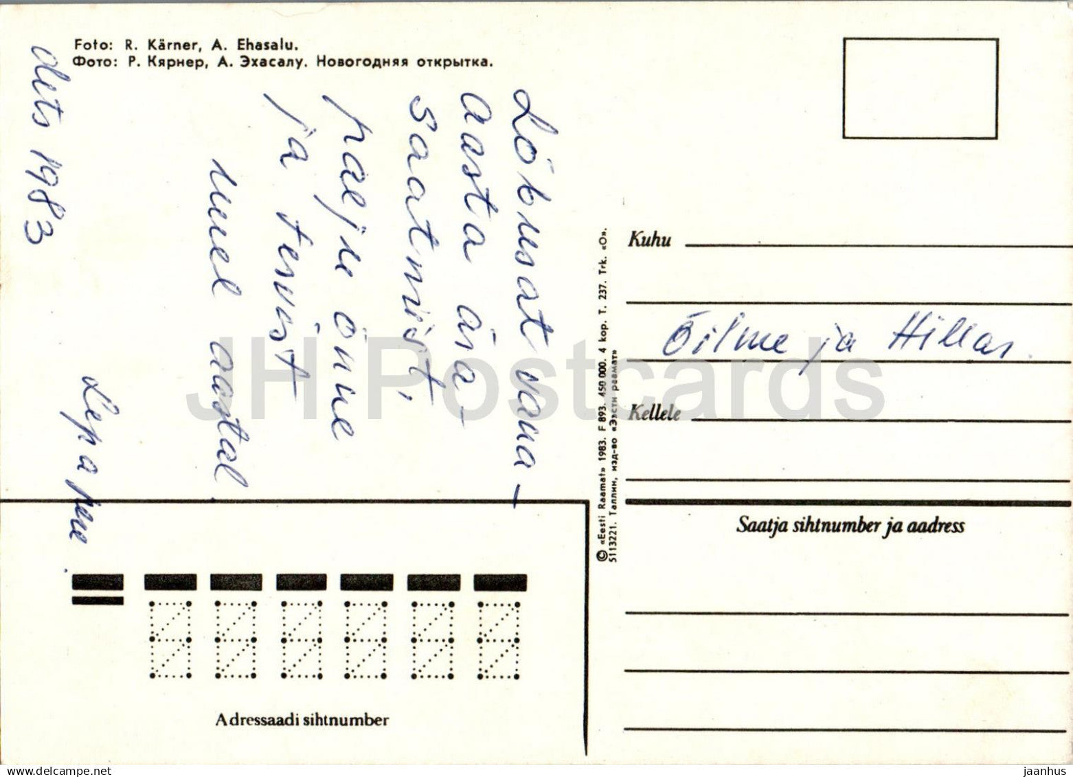 New Year Greeting card - 3 - candles - teapot - 1983 - Estonia USSR - used