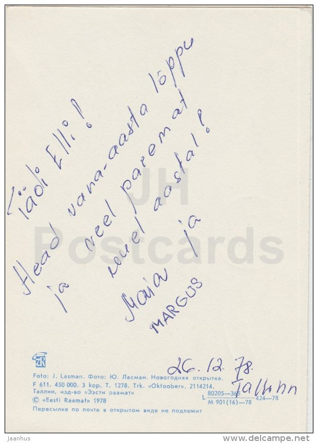 New Year Greeting card - 3 - mittens - horseshoe - 1978 - Estonia USSR - used
