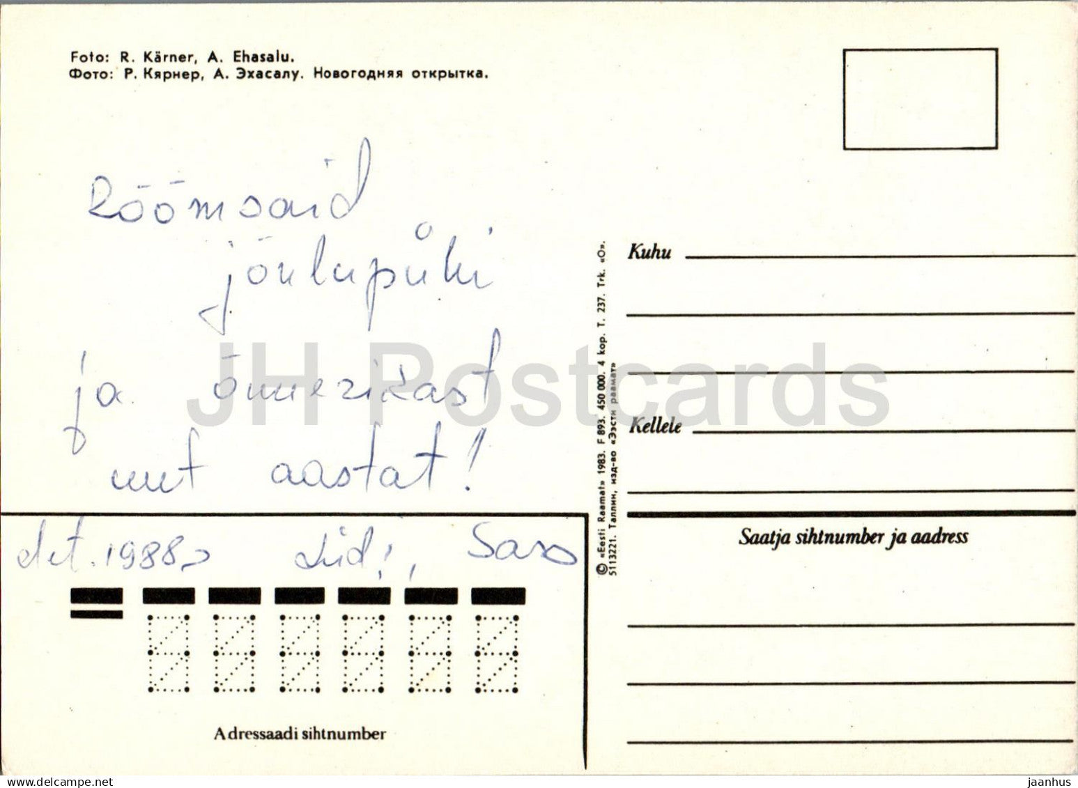 New Year Greeting card - 4 - candles - teapot - 1983 - Estonia USSR - used