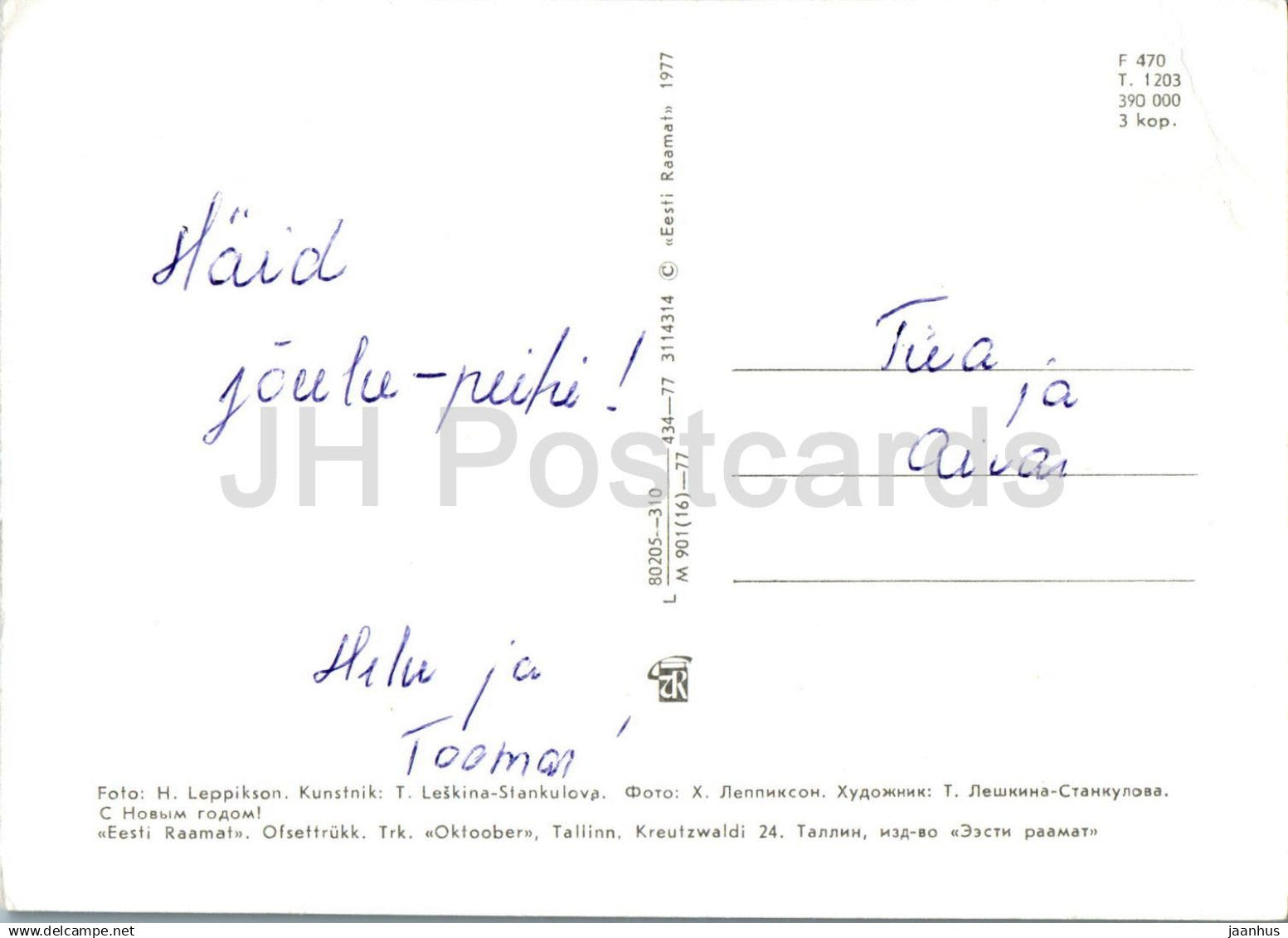 New Year greeting card - 4 - fir - candles - 1977 - Estonia USSR - used