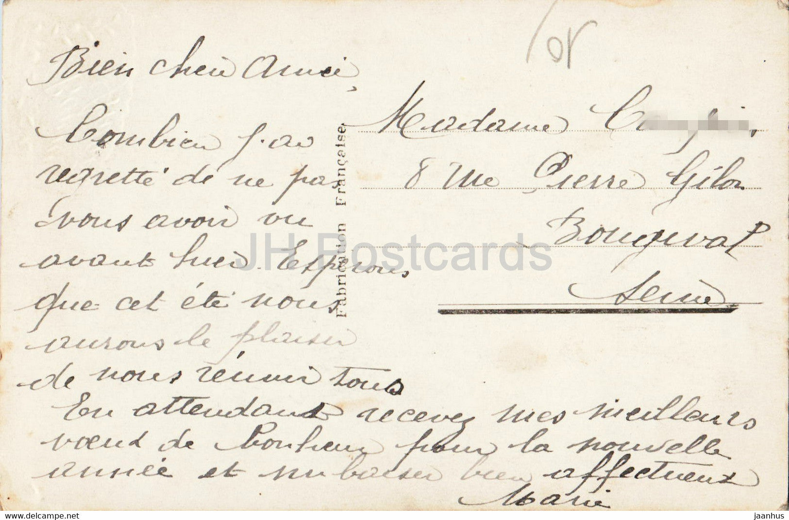 New Year Greeting Card - Bonne Annee - children - sledge - 2391 - old postcard - France - used