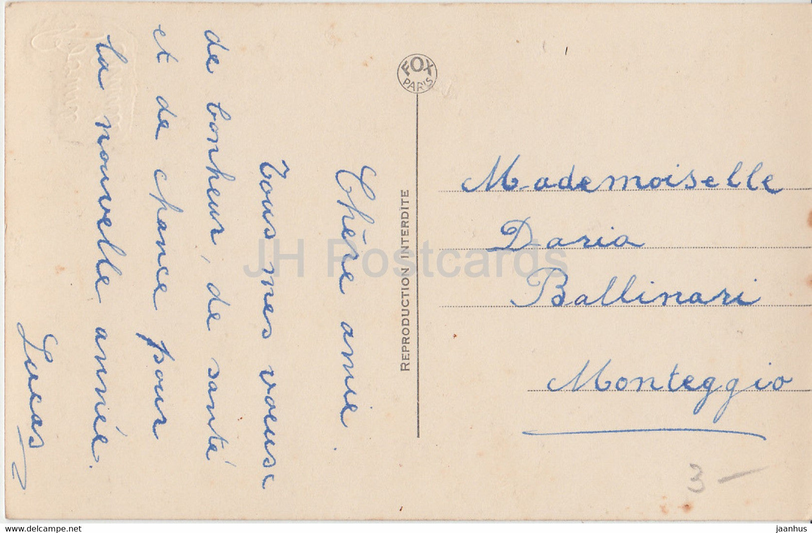 New Year Greeting Card - Bonne Annee - couple - Fox Paris 4428 - old postcard - France - used