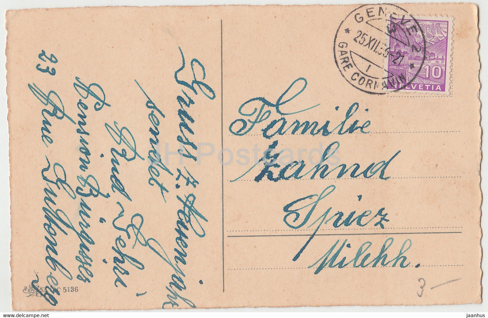 New Year Greeting Card - Bonne Annee - fir cones - ERIKA 5136 - old postcard - 1936 - France - used