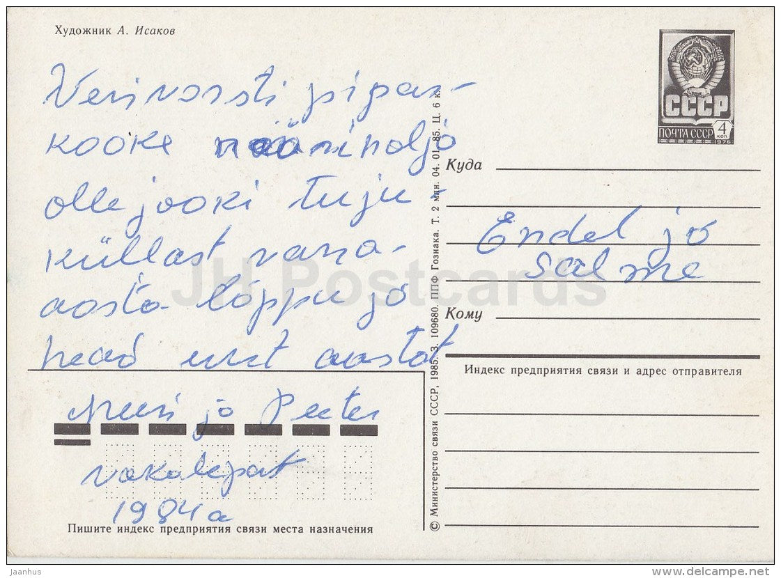 New Year Greeting Card by A. isakov - bullfinch - birds - postal stationery - 1985 - Russia USSR - used
