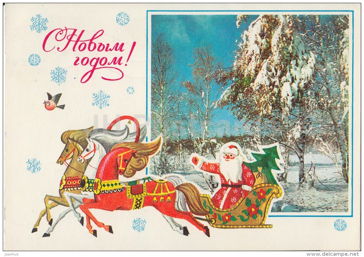 New Year greeting card by A. Myagkov - Santa Claus - Ded Moroz - troika - postal stationery - 1976 - Russia USSR - used