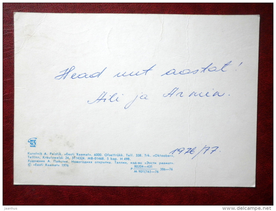 New Year Greeting card - by A. Paistik - space ships - 1976 - Estonia USSR - used