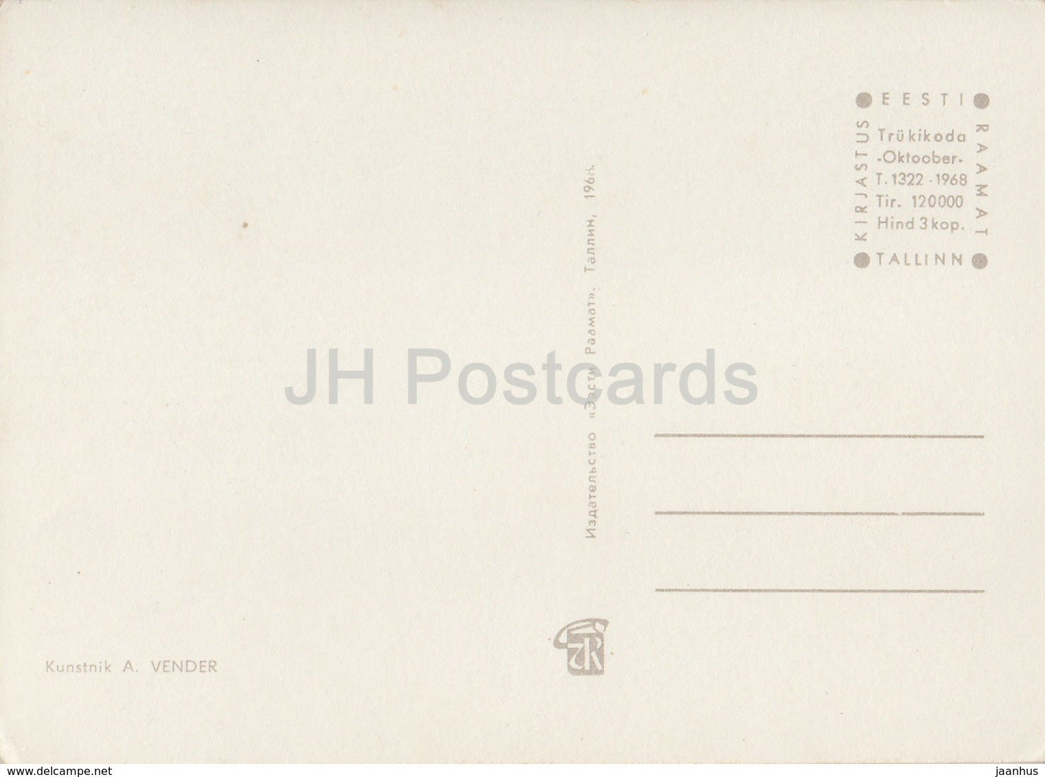 New Year Greeting Card by A. Vender - Fir Tree - horse sledge - 1968 - Estonia USSR - unused
