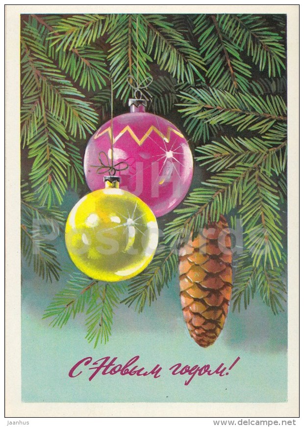 New Year greeting card by G. Gurtenko - decorations - cone - 1979 - Russia USSR - used