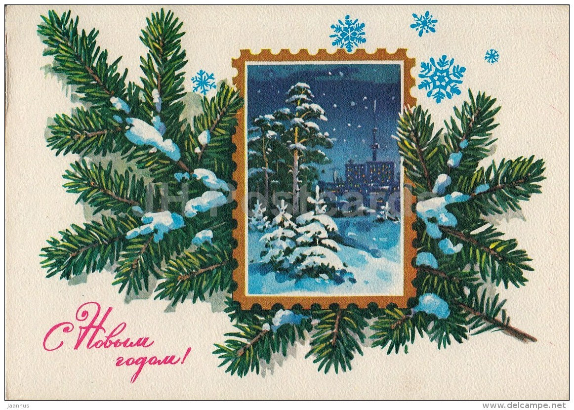 New Year greeting card by G. Kurtenko - winter view - postal stationery - AVIA - 1982 - Russia USSR - used
