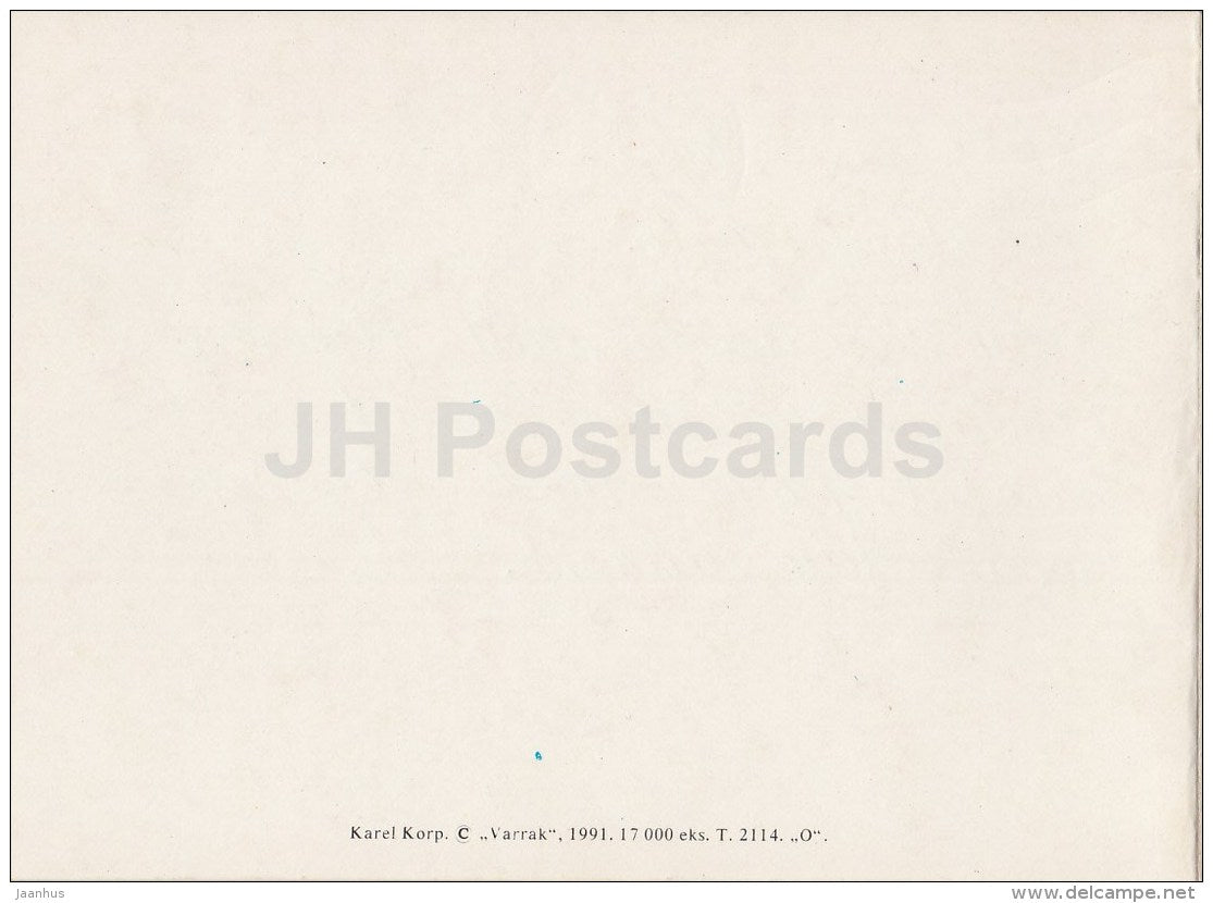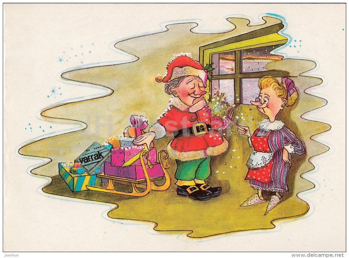 New Year greeting card by K. Korp - Santa Claus - gifts - illustration - 1991 - Estonia USSR - used