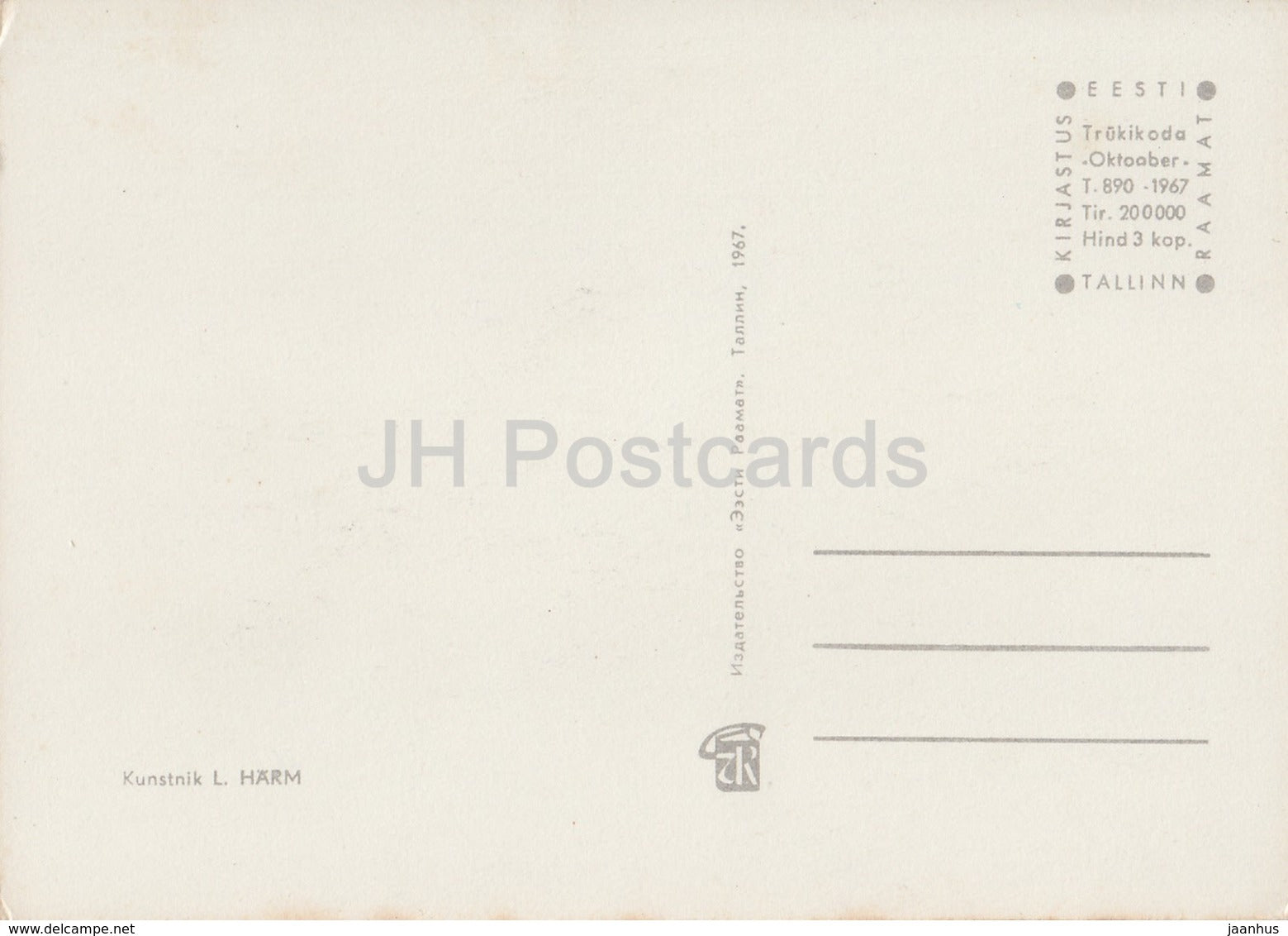 New Year Greeting Card by L. Harm - birds - apple - candies - 1967 - Estonia USSR - unused