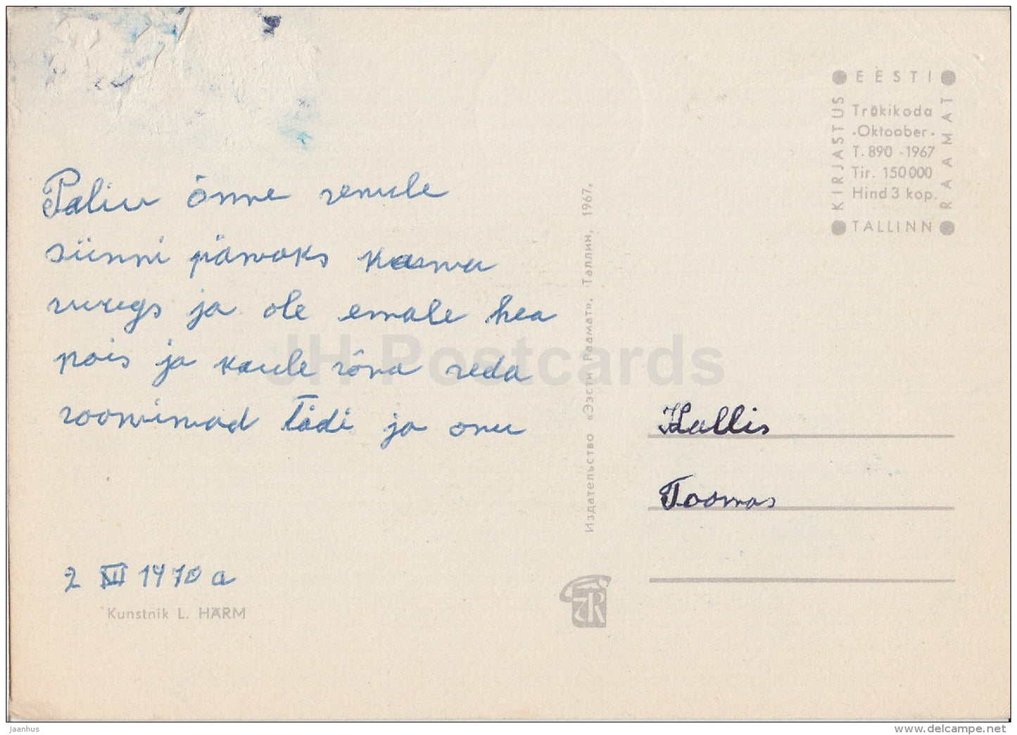 New Year Greeting Card by L. Härm - Boy with Gift - 1967 - Estonia USSR - used