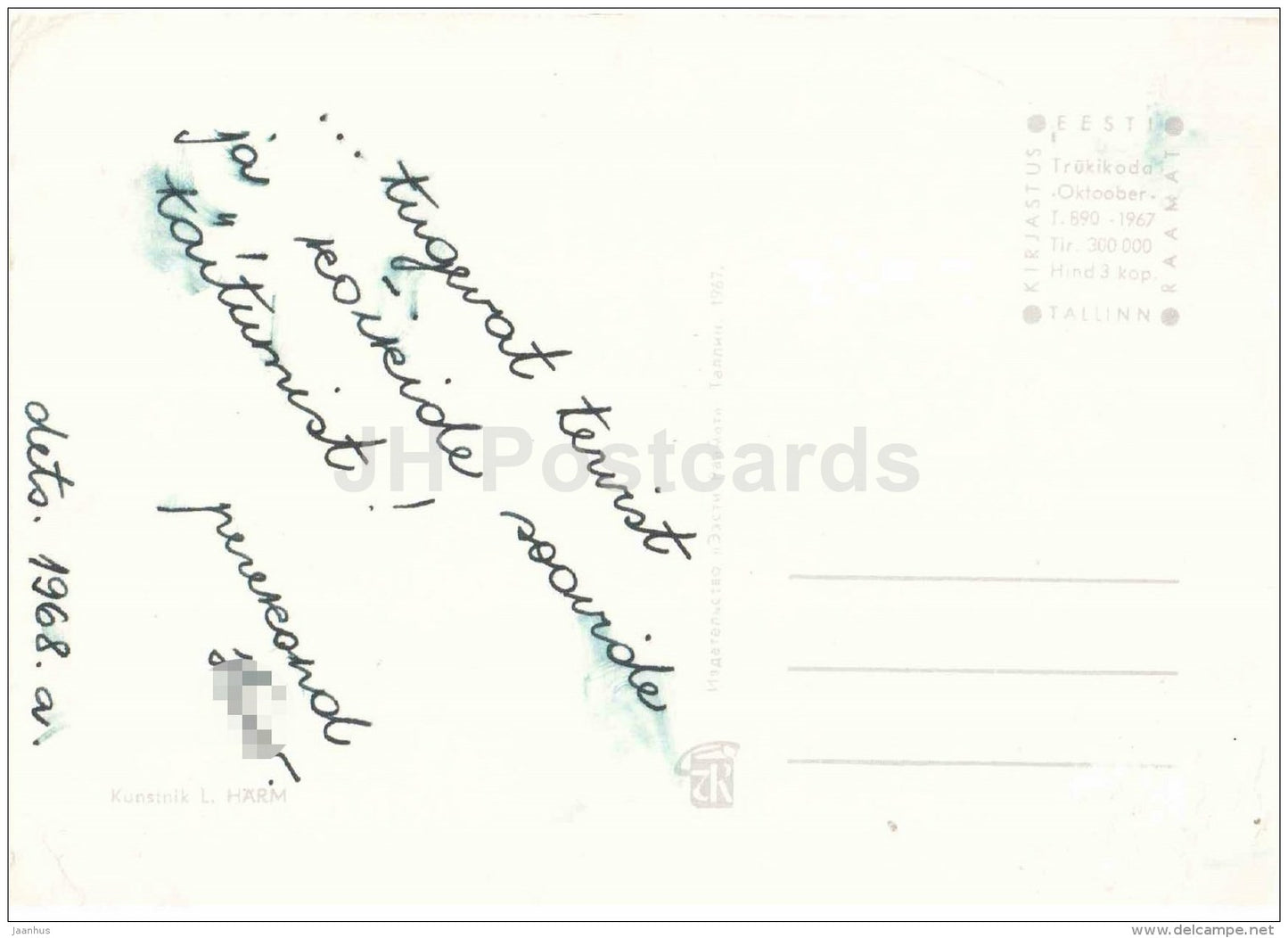 New Year greeting Card by L. Härm - candle - apple - candies - 1967 - Estonia USSR - used