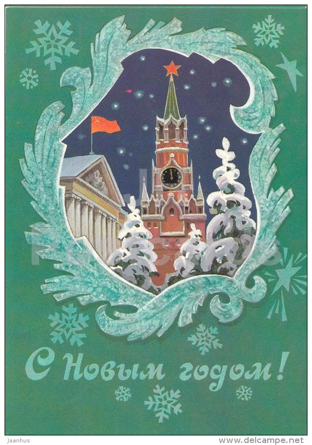New Year greeting card by L. Kuznetsov - 1 - Moscow Kremlin - postal stationery - 1983 - Russia USSR - used