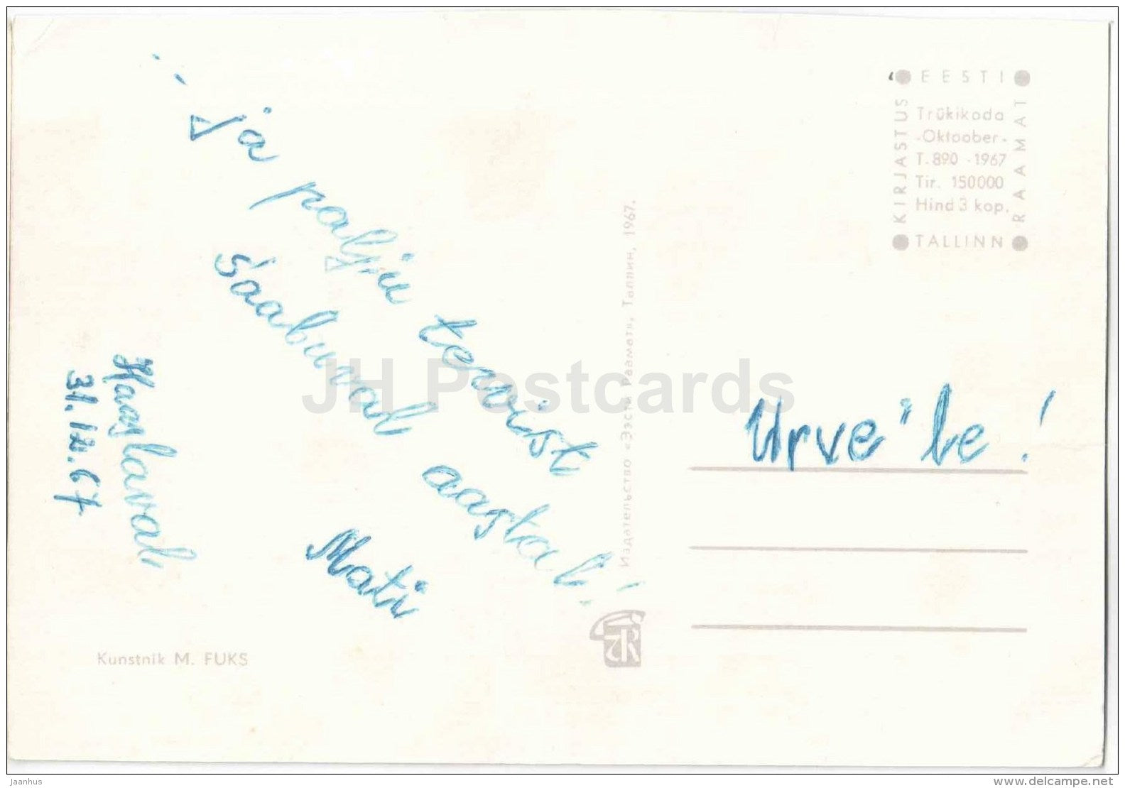New Year greeting Card by M. Fuks - Tallinn Old town view - 1967 - Estonia USSR - used