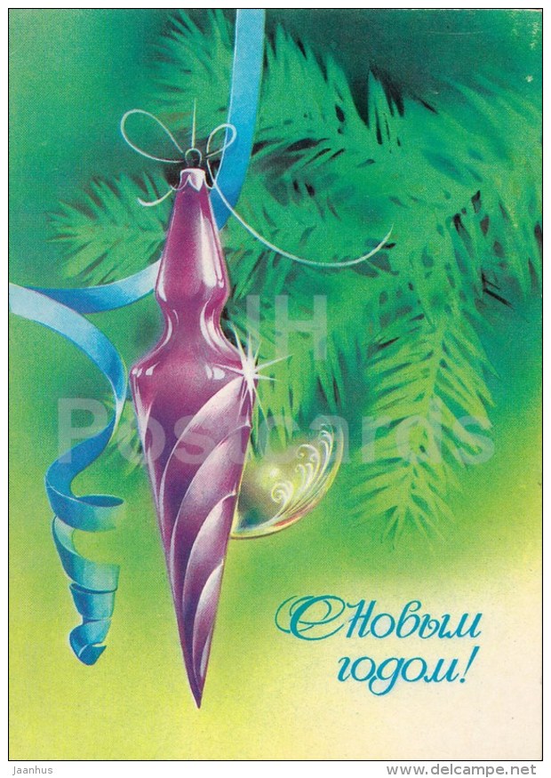 New Year greeting card by N. Korobova - decorations - postal stationery - AVIA - 1979 - Russia USSR - unused