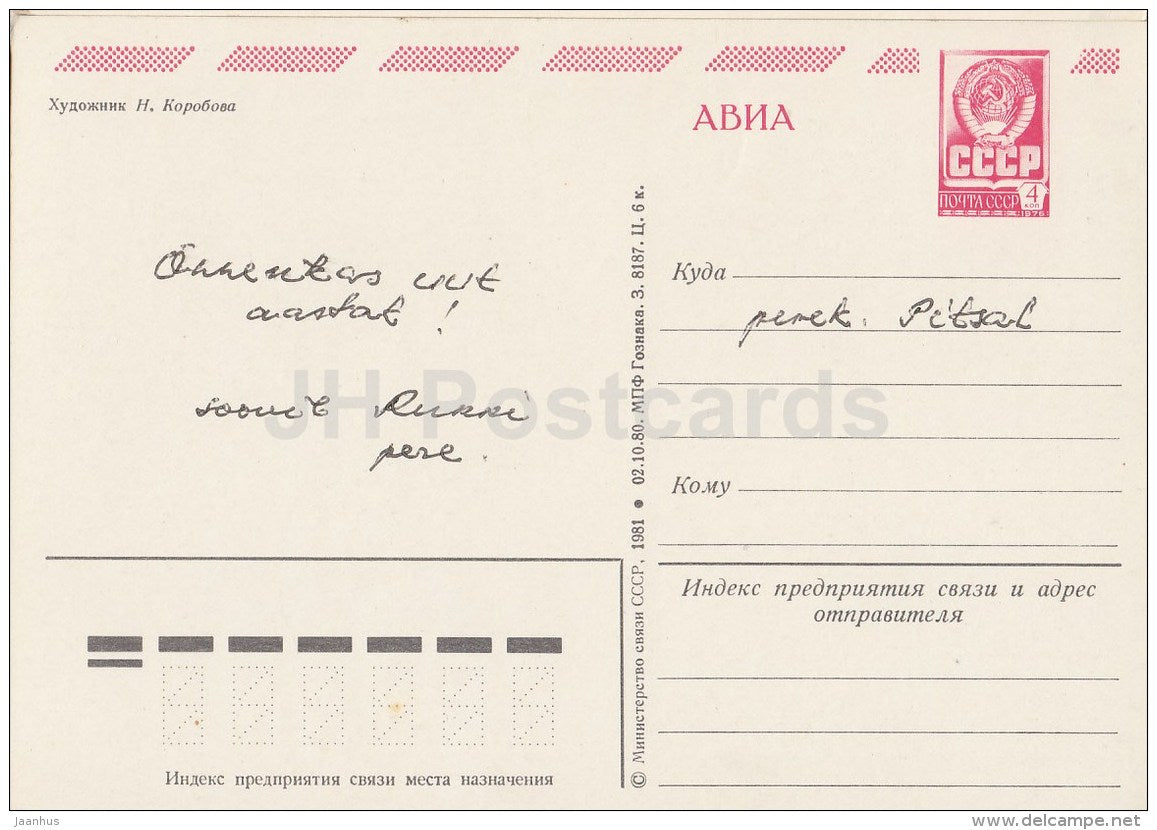 New Year greeting card by N. Korobova - decorations - postal stationery - AVIA - 1981 - Russia USSR - used