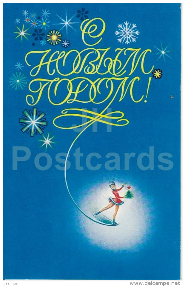 New Year Greeting Card by N. Korobova - figure skater - 1983 - Russia USSR - used