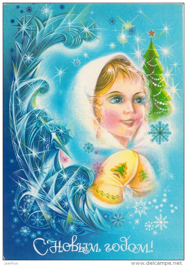 New Year greeting card by N. Korobova - woman - postal stationery - 1982 - Russia USSR - used