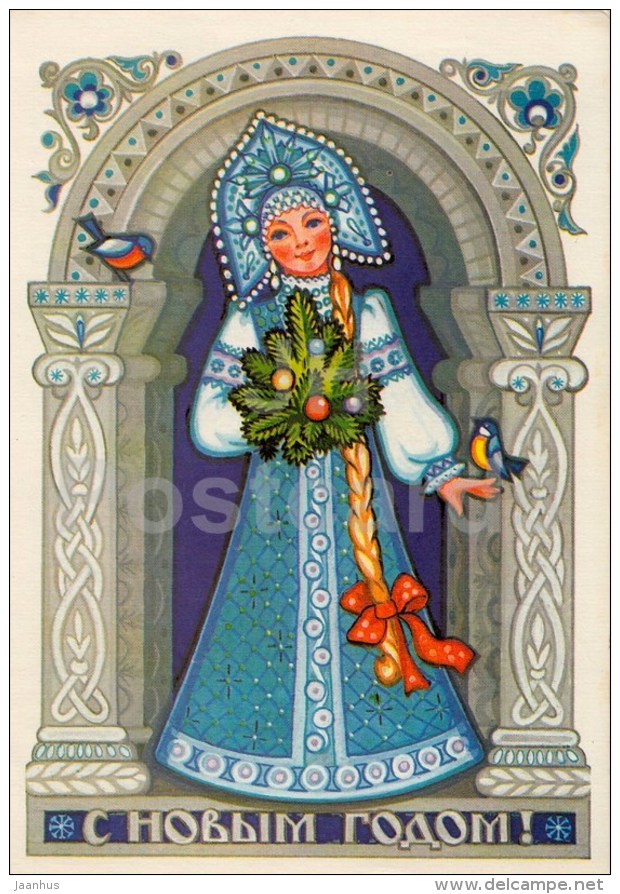 New Year greeting card by S. Komarova - Snegurochka - postal stationery - 1980 - Russia USSR - used