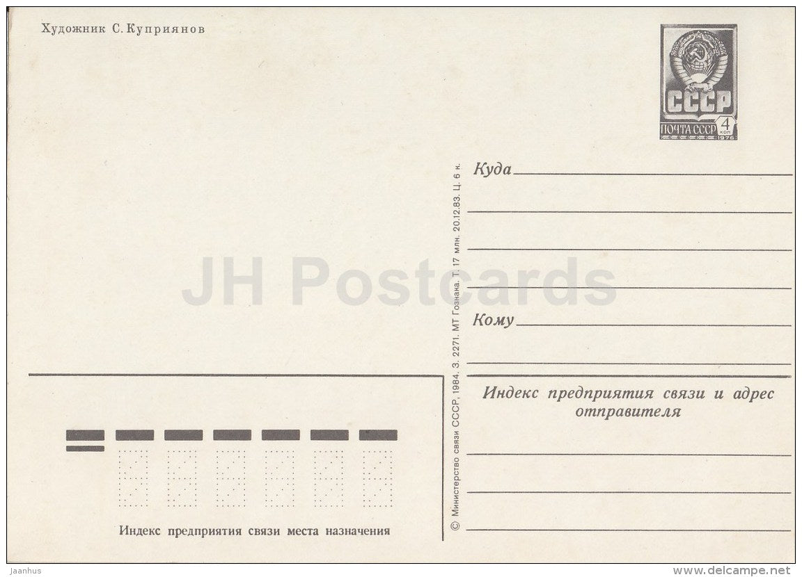 New Year Greeting Card by S. Kupriyanov - winter forest - postal stationery - 1984 - Russia USSR - unused
