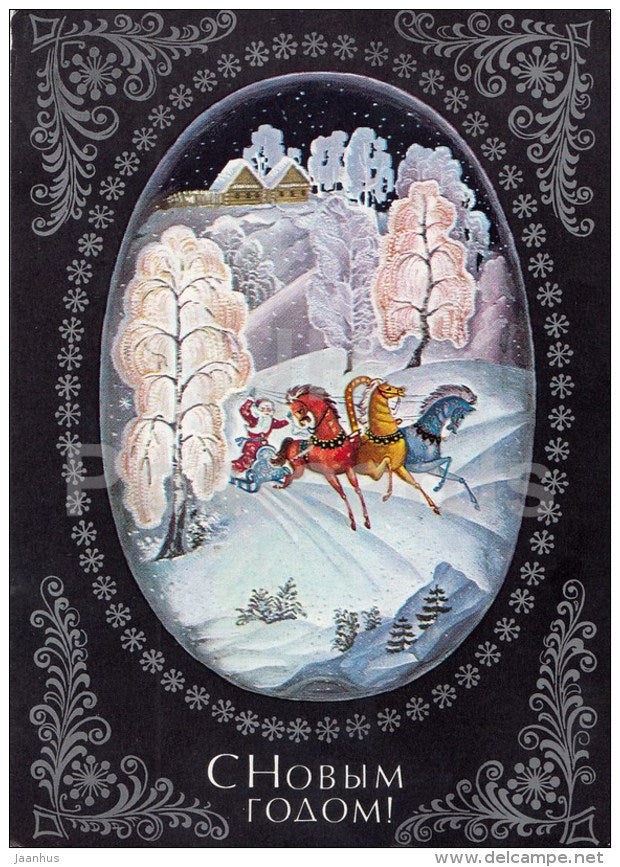 New Year greeting card by S. Pegov - sledge - troika - postal stationery - AVIA - 1975 - Russia USSR - used