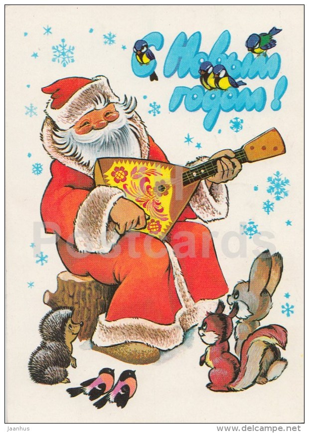 New Year greeting card by V. Chetverikov - 1 Ded Moroz - squirrel - postal stationery - AVIA - 1980 - Russia USSR - used