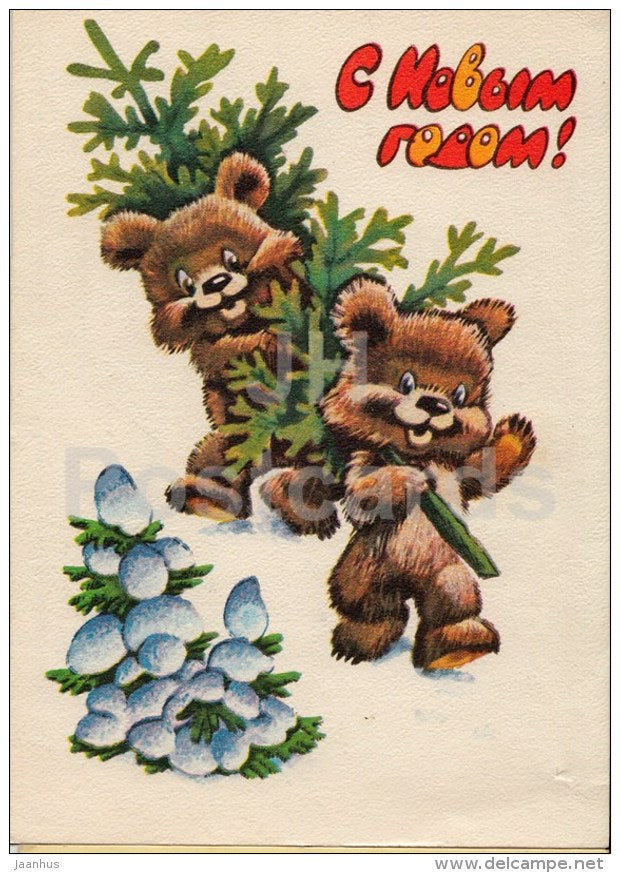 New Year greeting card by V. Chetverikov - bear - postal stationery - AVIA - 1979 - Russia USSR - unused