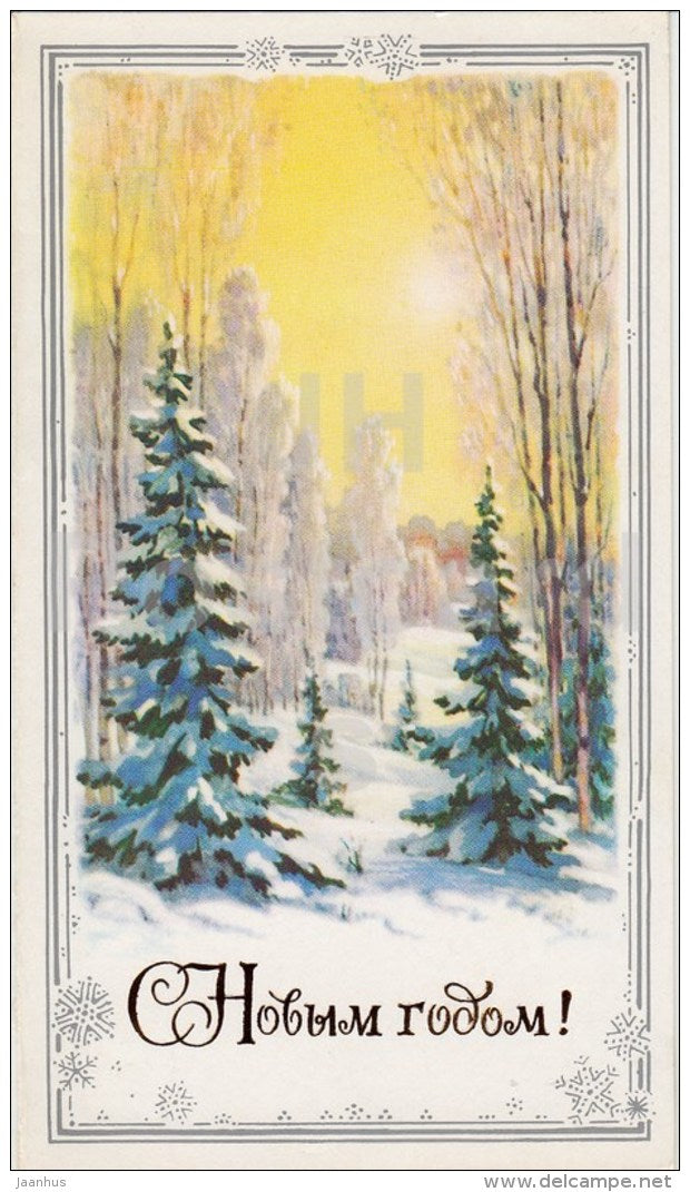 New Year greeting card by V. Gorepov - Winter Forest - 1983 - Russia USSR - used