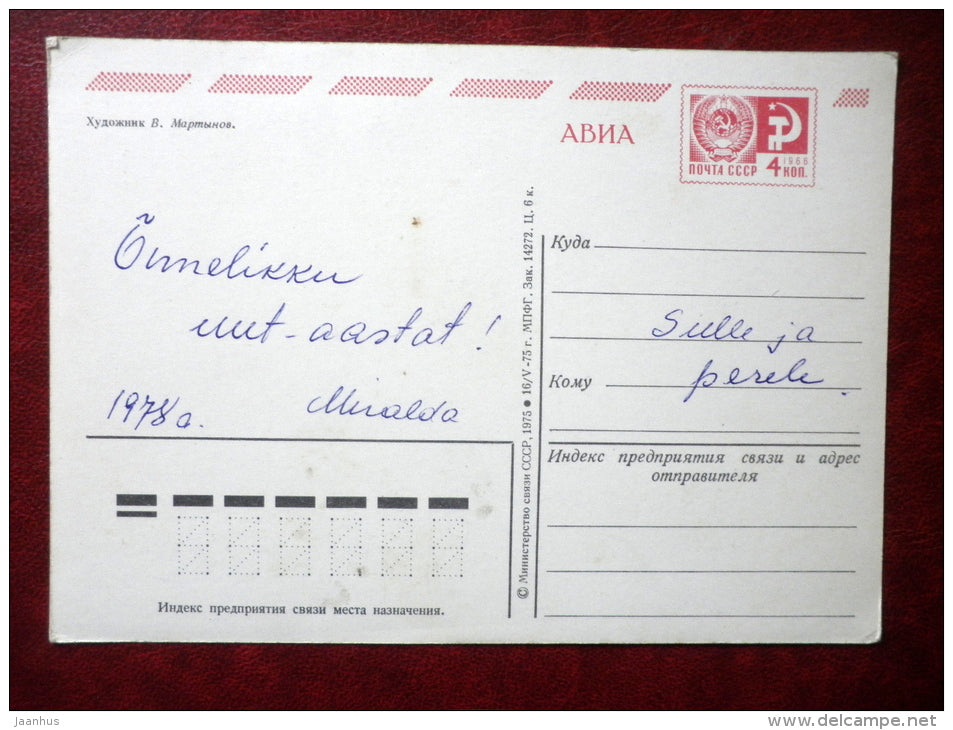New Year Greeting card - by V. Martynov - christmas tree - decorations - 1975 - Russia USSR - used