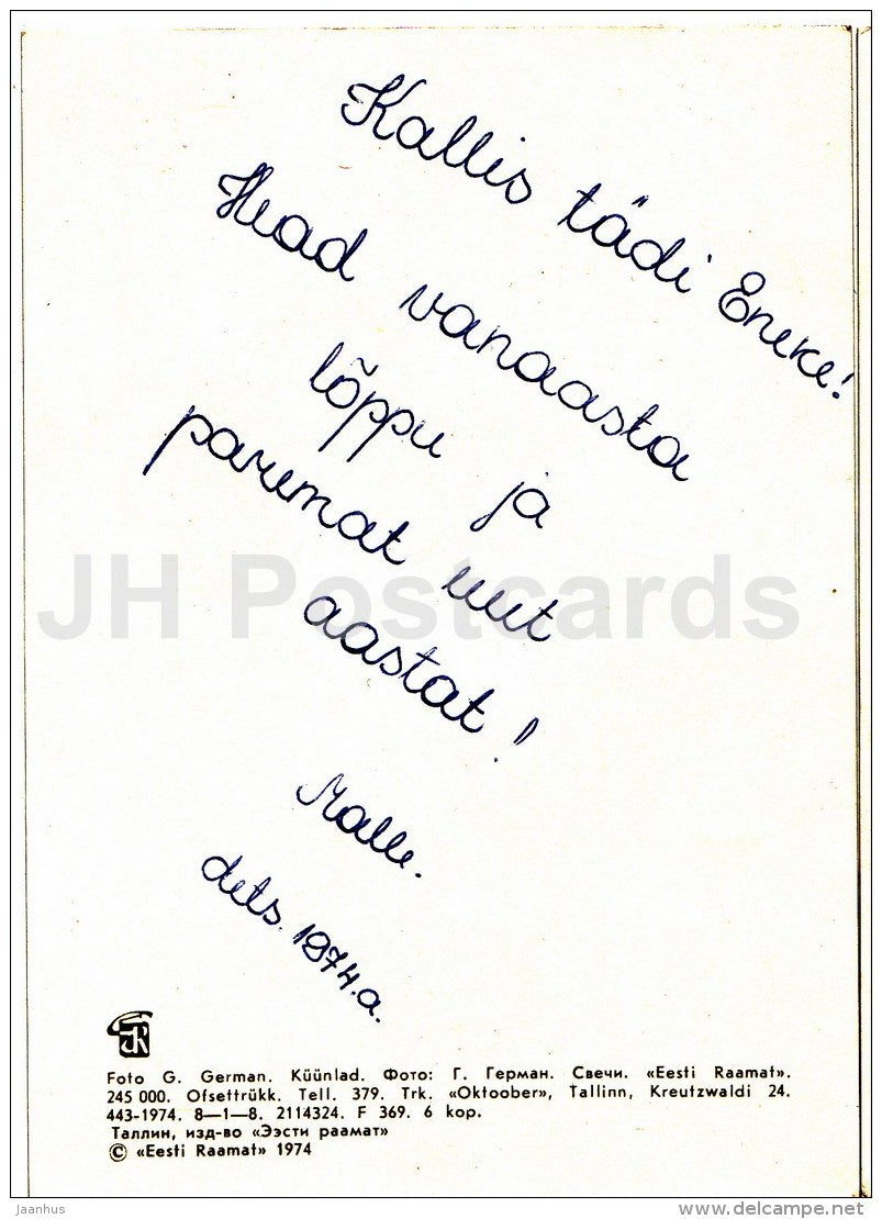 New Year Greeting card - candle - decoration - 1974 - Estonia USSR - used