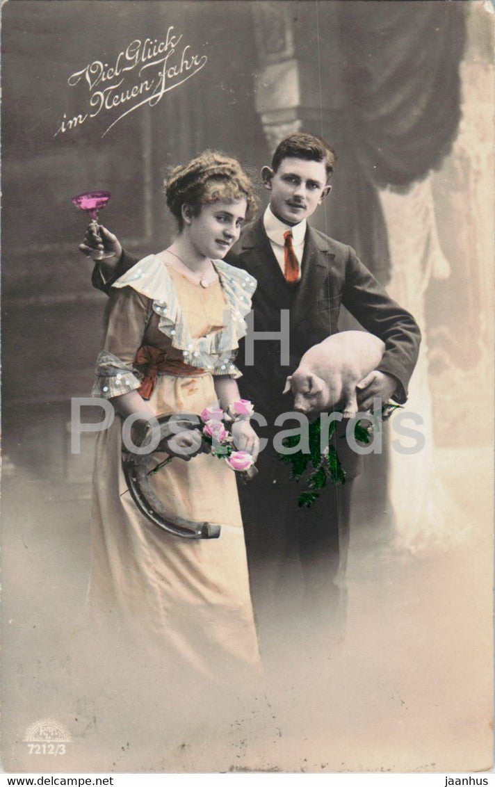 New Year Greeting Card - couple - man and woman - 7212/3 - old postcard - 1926 - Switzerland - used