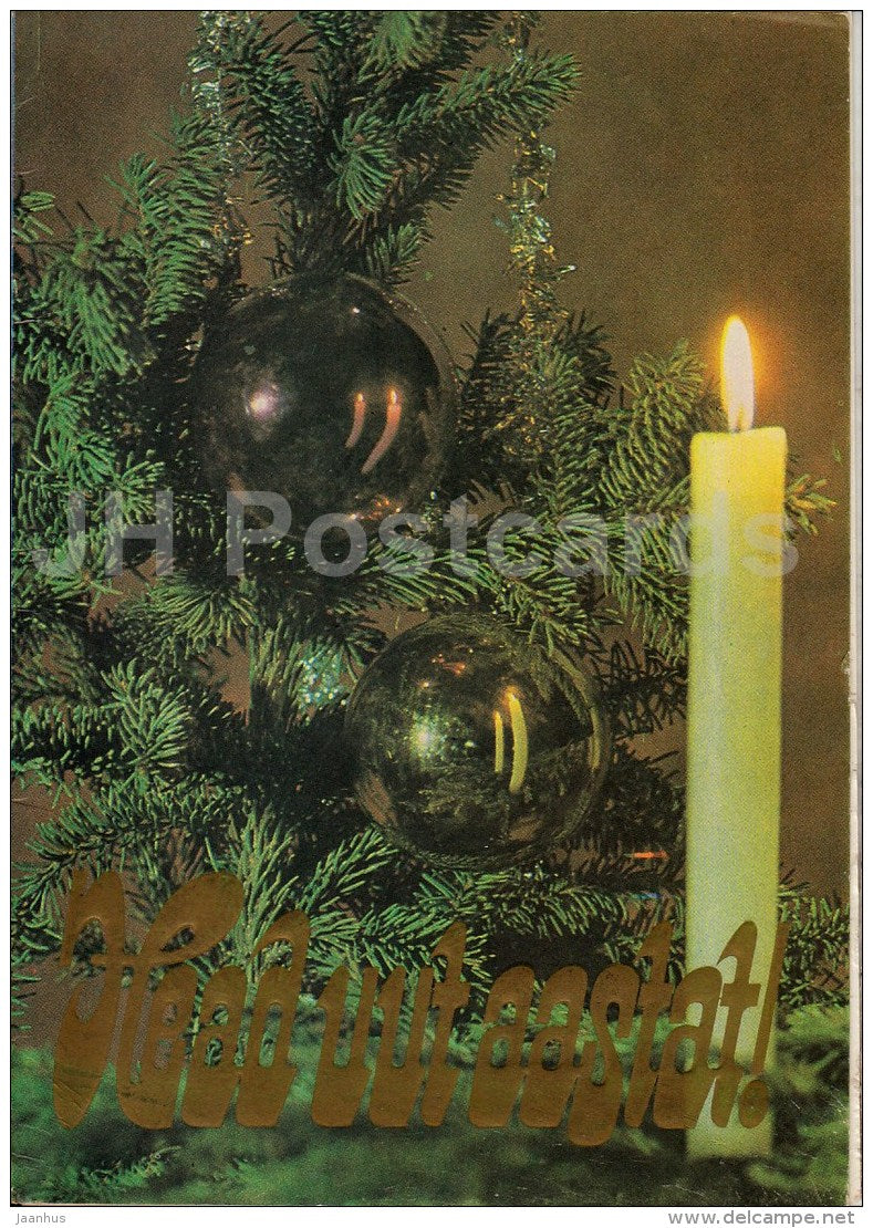 New Year Greeting Card - decorations - candle - 1982 - Estonia USSR - used