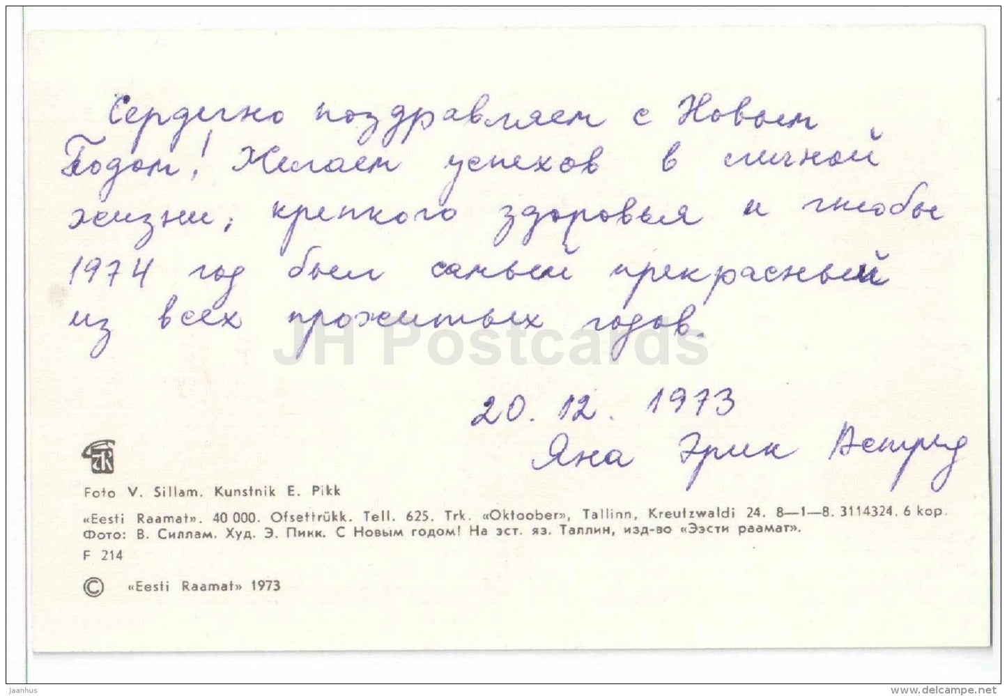 New Year Greeting card - doll in estonian Folk Costumes - candle - 1973 - Estonia USSR - used