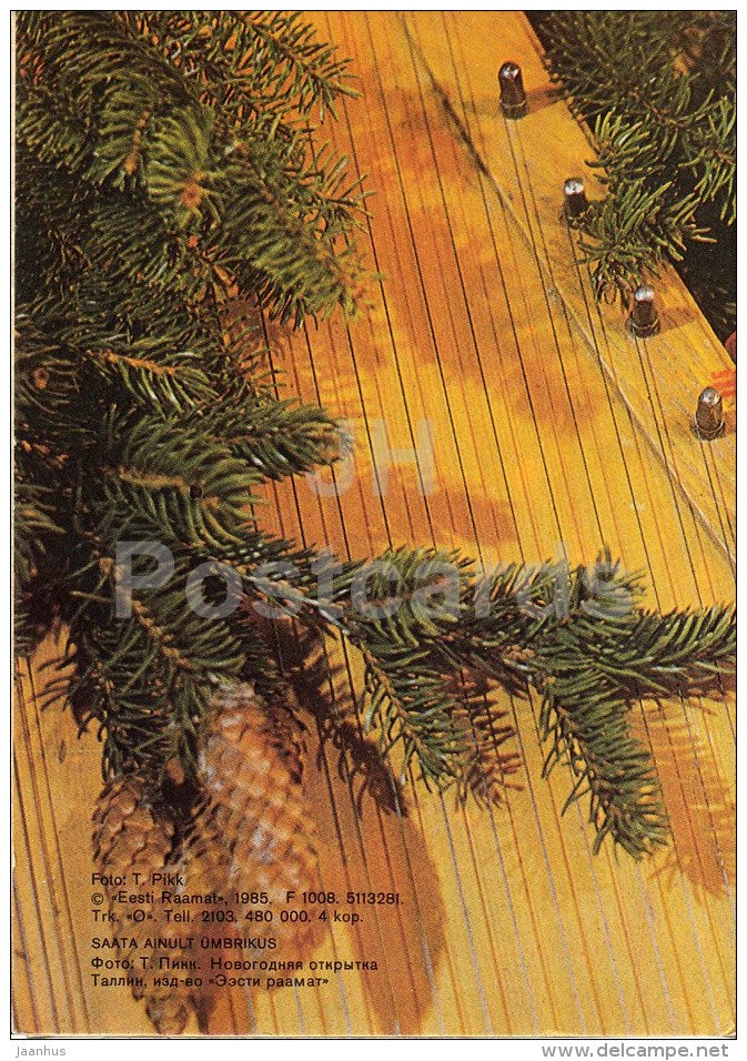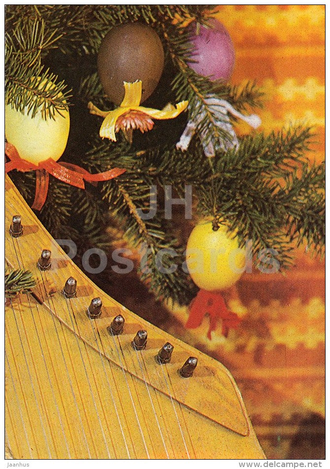 New Year Greeting Card - Estonian Zither - decorations - 1985 - Estonia USSR - unused