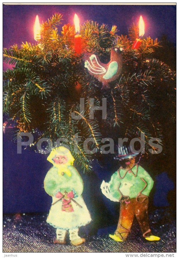 New Year Greeting card - gingerbreads - candle - 1976 - Estonia USSR - used