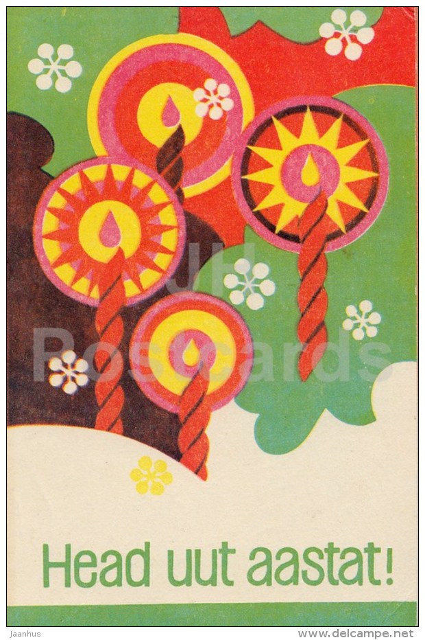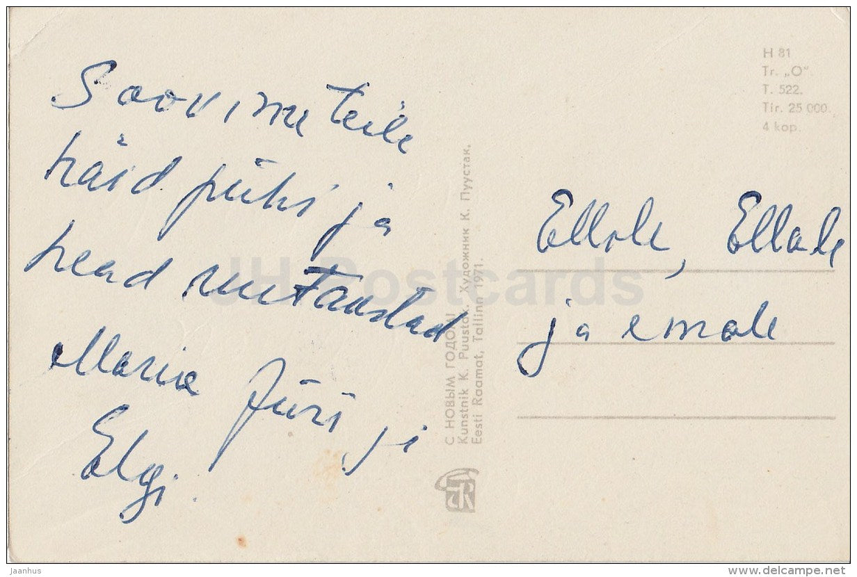 New Year Greeting card - illustration by K. Puustak - candles - 1971 - Estonia USSR - used