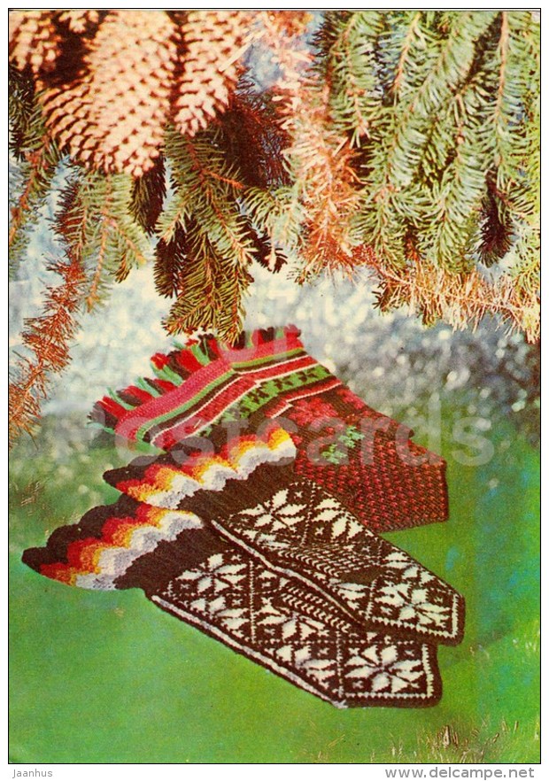 New Year Greeting Card - mittens - fir cones - 1980 - Estonia USSR - unused