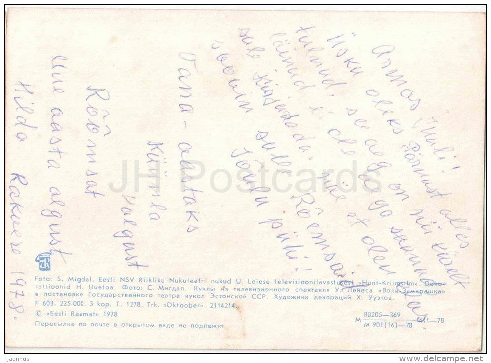 New Year Greeting card - puppetry - hare - 1978 - Estonia USSR - used