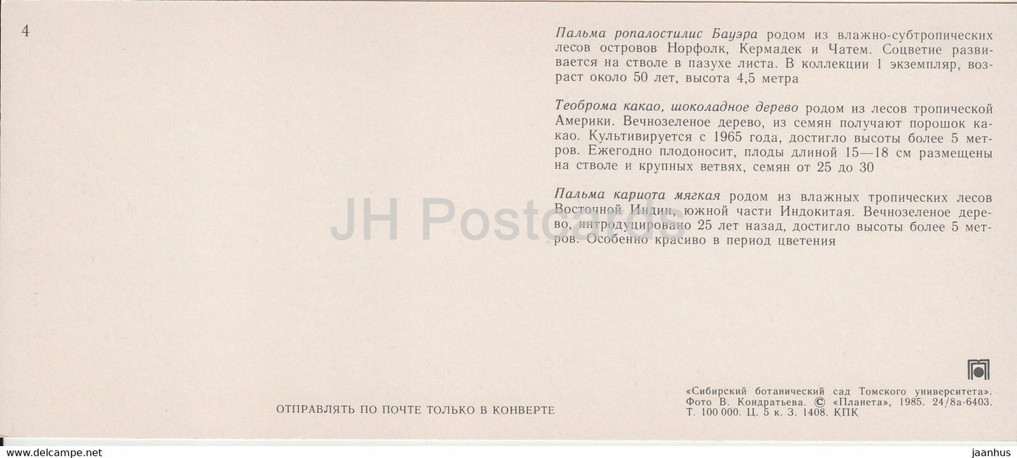 Nikau Palm - Cacao Tree - Caryota - Siberian Botanical Garden - 1985 - Russia USSR - unused