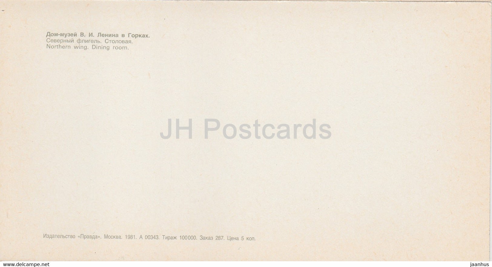 Northern Wing - Dining Room - Lenin's House Museum - Gorki Leninskiye - 1981 - Russia USSR - unused