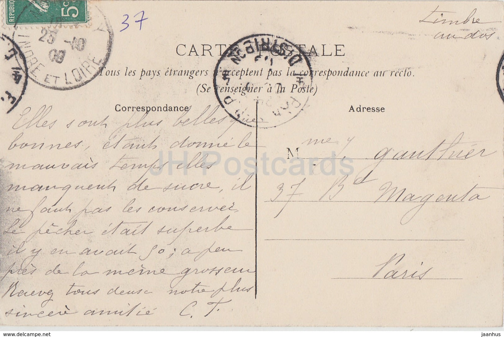 Nouzilly - Chateau de l'Orfraisiere - castle - 2 - old postcard - 1908 - France - used