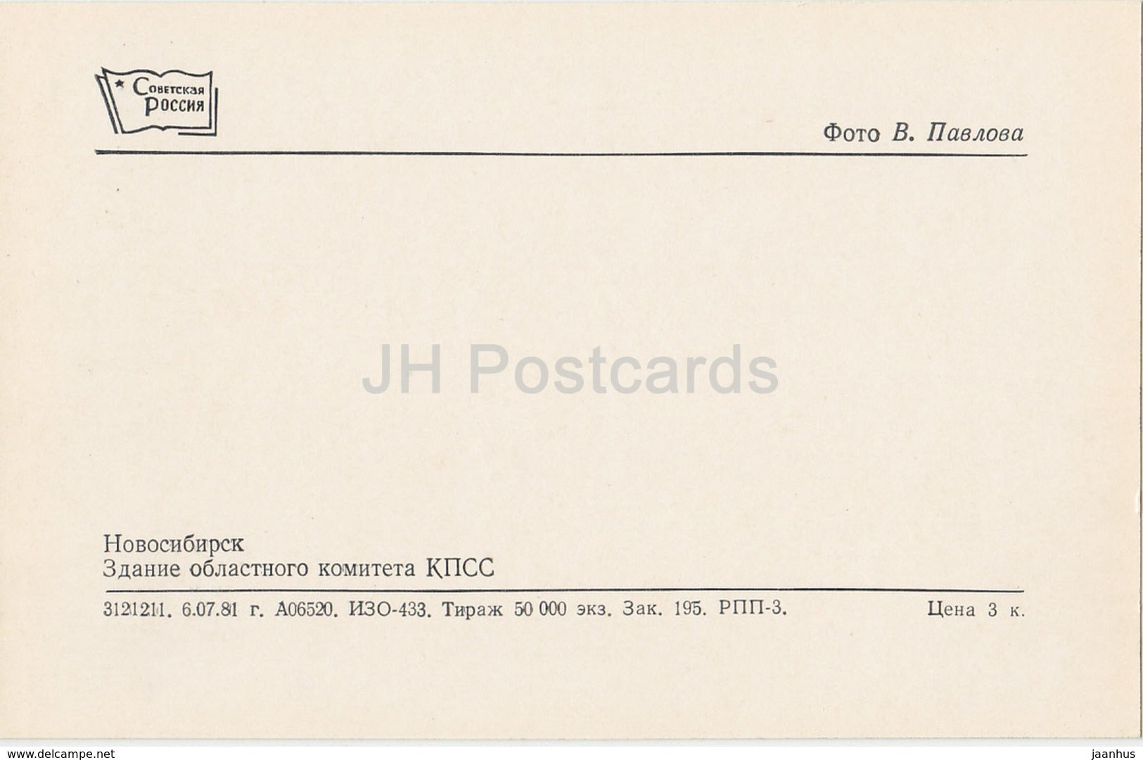 Novosibirsk - building of the regional committee of the CPSU - cars - 1981 - Russia USSR - unused