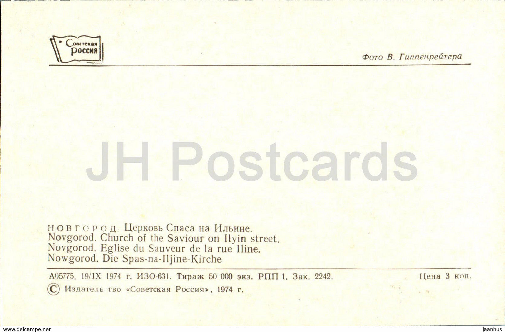 Novgorod - Church of the Saviour on Ilyin street - 1974 - Russia USSR - unused