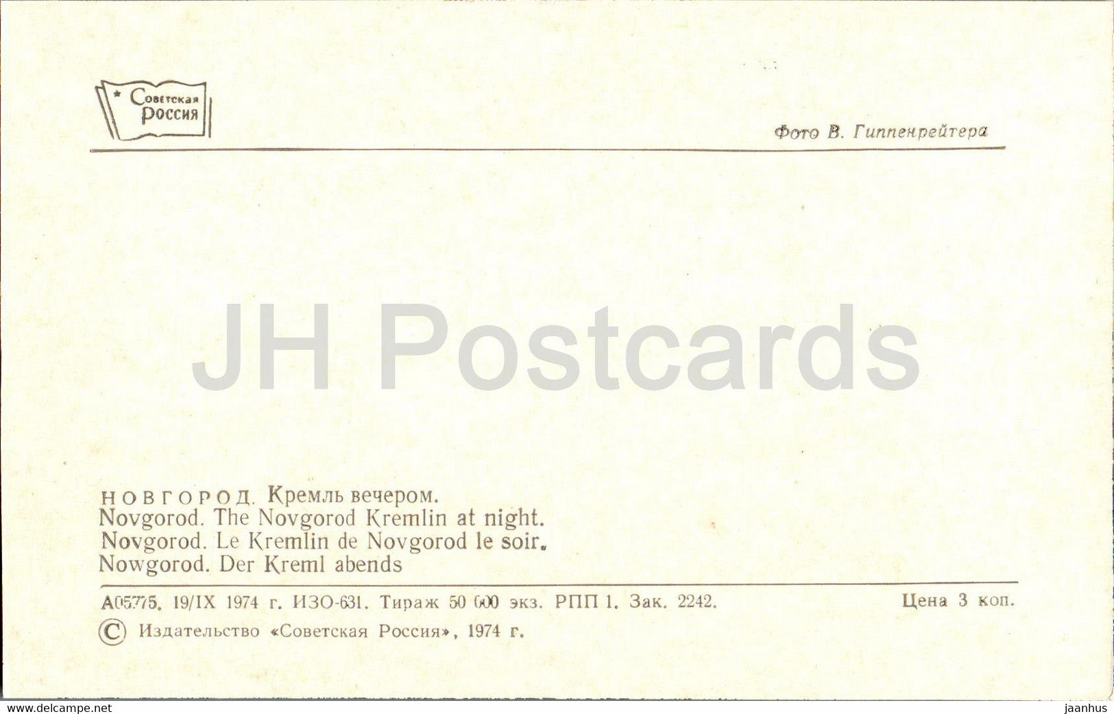 Novgorod - The Novgorod Kremlin at Night - 1974 - Russia USSR - unused