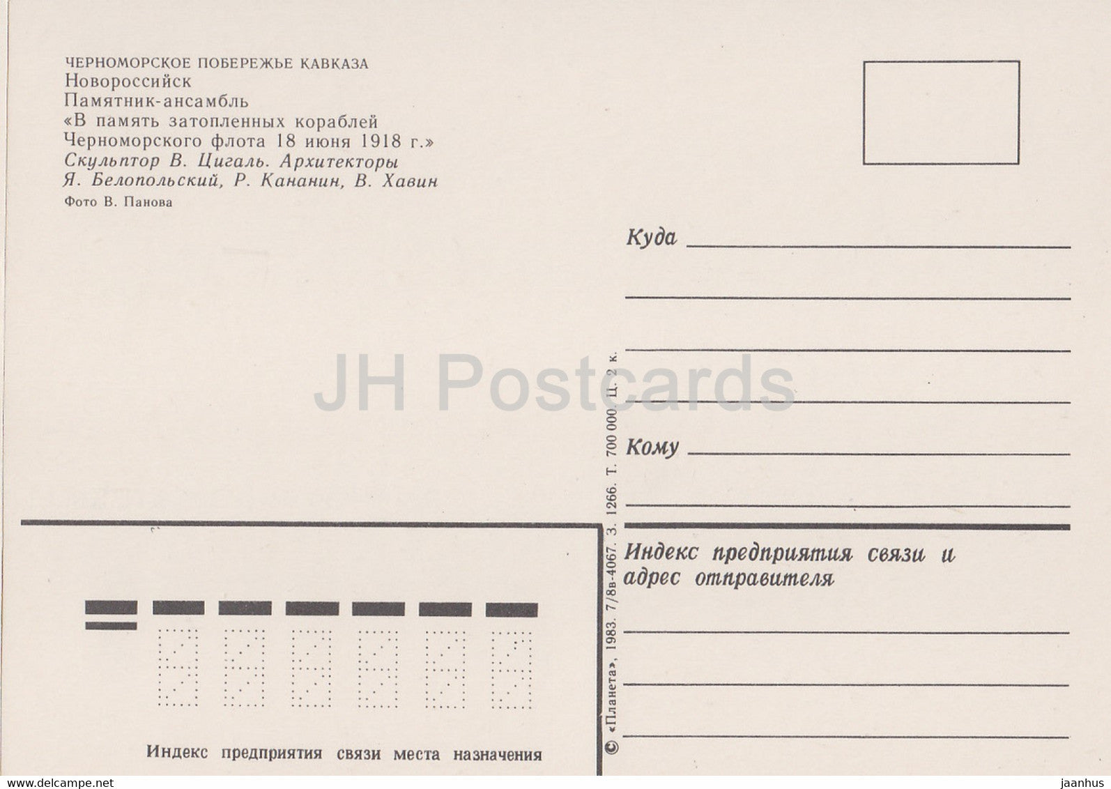 Novorossiysk - monument in memory of the sunken ships of the Black Sea Fleet in 1918 - 1983 - Russia USSR - unused